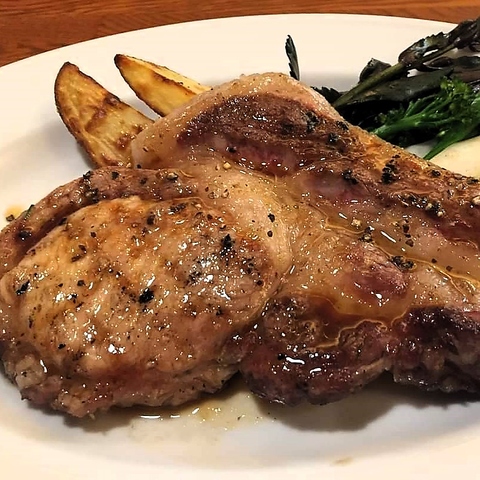 十勝の北海道ホープランドにて、食物残渣を活用した純国産飼料100%で長期肥育された365日完全放牧の「蝦夷豚」。豚が畑に肥料をもたらす循環型農業で育った健康な豚です。ジビエより脂の融点が低く、口どけと消化の良さが特徴。同豚肉の自家製ソーセージやハムもご用意しております。