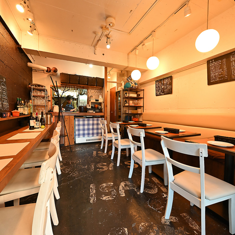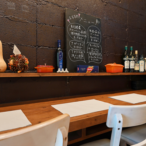 アットホームな雰囲気が漂うテーブル席は、気の合う仲間との集まりにも最適。肩肘張らずに料理を楽しめる空間で、ワインを片手にゆっくり会話が弾みます。