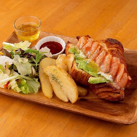 豚しゃぶクロワッサンやサーモンアボカドのhareバーガーなど、見た目も華やかな創作サンドイッチが人気!
