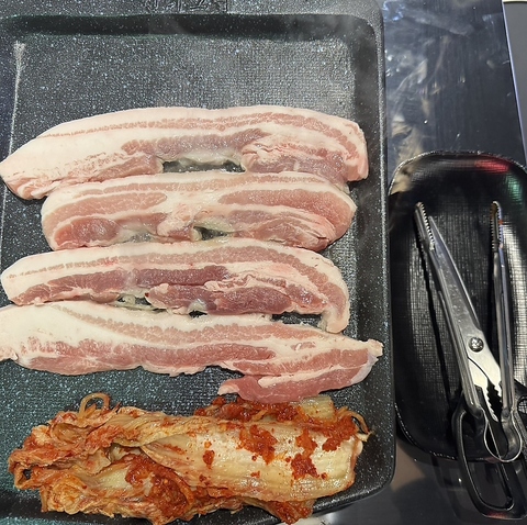香ばしく焼き上げた豚肉を、新鮮な巻き野菜で包む最高の組み合わせ!分厚いお肉から溢れる肉汁の甘みが口いっぱいに広がります☆香ばしい匂いが食欲をそそる韓国の定番焼肉です♪