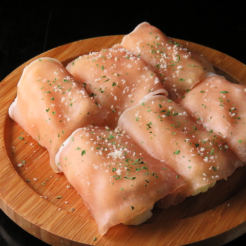 夜ポテトサラダ、ポテトフライ(ギザギザの太めのポテト)、生ハムポテトヴェール包みで、ビールも進む大満足の逸品。スパイスとアンチョビの風味がきいており、粉チーズとパセリが香りたまらない!お酒がついつい進んでしまうコースです。ぜひ、今宵の楽しいひとときに友人や仲間とぜひ、ご利用ください★