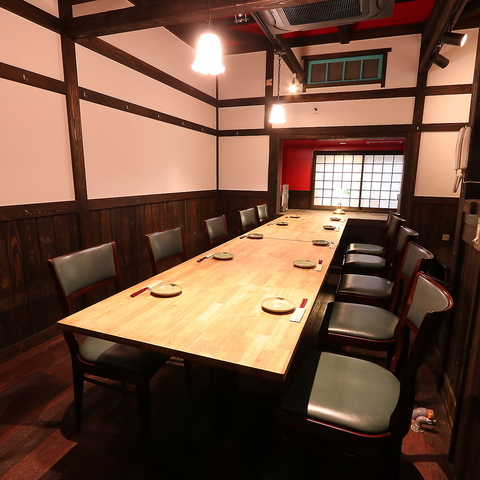 玄関から直接2階へ上がる、完全プライベートな「隠れ個室」。15名様までご利用可能で、専用トイレ完備、タブレットオーダー導入により、来店から退店まで他のお客様と顔を合わせることなく過ごせます。まさに大人の秘密基地のような空間です。