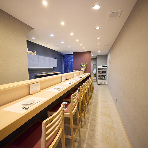目の前で調理される様子を愉しめる臨場感あふれるカウンター席はデート利用などにもおすすめです。特別な日のご利用や大切な方とのお食事はぜひ当店へお越しください。