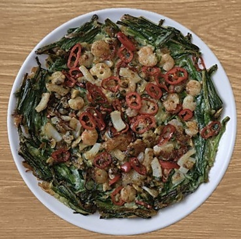 外はカリッと香ばしく、中はモチモチとした食感がたまらない逸品。イカやエビなどの新鮮な海の幸がたっぷり!カルグクスと一緒に、本場韓国の味をお楽しみください。