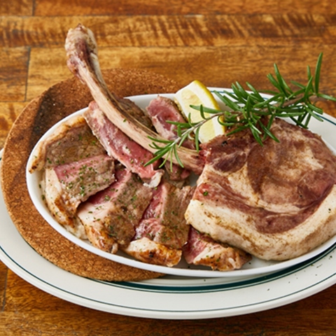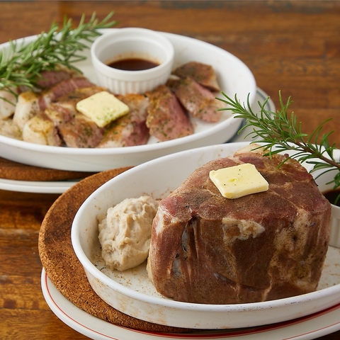 当店のお肉料理はどれもボリューム満点でお肉好きのお客様にもご満足いただけること間違いなし!中でも人気No.1の《The VACANZA》は、サーロインが200g、豪快骨付きロースが300gのセットで超豪快なコンビネーション!
