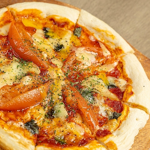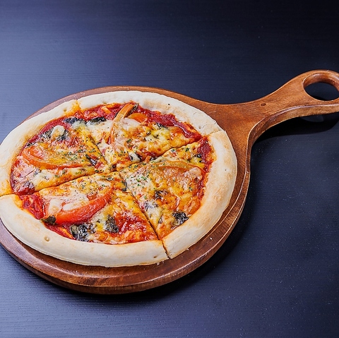 焼きたての生地は外はカリッと、中はもちもち。とろけるモッツァレラチーズのまろやかさと、甘みのあるトマトソースが絶妙に調和します。ひと口ごとにバジルの爽やかな香りが立ち上り、素材の美味しさをそのまま楽しめる、シンプルながら奥深い味わいの一枚です!シェアしてお楽しみください!