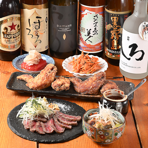 「笑いばなし」の看板は、「笑焼き 和牛タタキ」や「手羽先唐揚げ」といったこだわりの肉料理です。上質な和牛タタキは舌の上でとろける旨さ。手羽先唐揚げはタレ・塩から選べるやみつきの味!「もつ煮込み」や「大トロホルモン」など、豪快な肉料理を心ゆくまで堪能してください!