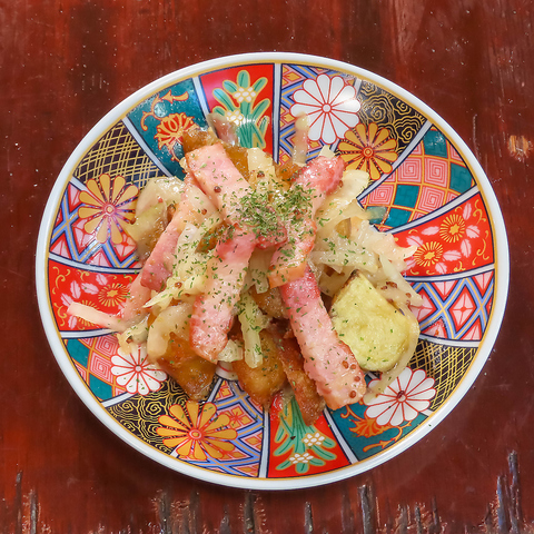 新鮮な豆苗と燻製鴨肉に、自家製の玉ねぎドレッシングが抜群に合います。さっぱりとした味わいの豆苗に、燻製した鴨肉の風味が加わることで、深みのある味わいに仕上がり食欲をそそります。一口食べれば、その絶妙なバランスに驚くこと間違いなし!焼串のお供にさっぱりとした豆苗サラダをお召し上がり下さい。