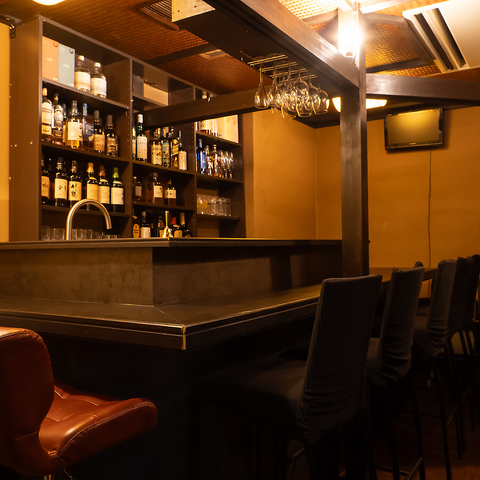『裏吉芳』のバーカウンターは、7席のカウンター席をご用意しております。『表吉芳』でお食事を楽しまれてから雰囲気を変えて豊富なお酒を楽しんで頂くのが吉芳流の楽しみ方◎是非こちらもお楽しみください。