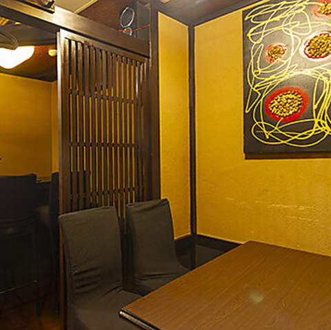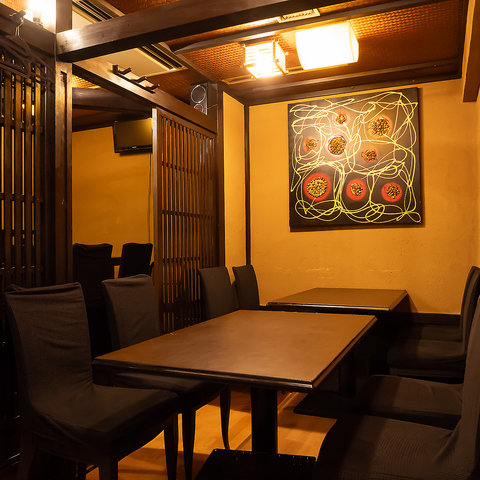 4名様用のテーブル席は、配置を工夫することで最大10名様までご利用可能な半個室空間となります。周りを気にせずにお過ごしいただけるため、ご宴会や職場の飲み会、少人数のパーティーに最適です。事前にご相談いただければ、プライベート感のある落ち着いた空間をご用意いたします。