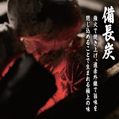 店内に広がる芳ばしい煙と香りは、まさに備長炭で焼き上げる本格焼鳥の醍醐味。最高品質の備長炭を使い、強火で一気に焼き上げることで、遠赤外線効果により素材の旨味をぎゅっと閉じ込めます。この繊細な火入れの妙技が、表面は香ばしく、中はジューシーな極上の焼鳥を生み出します。落ち着いた雰囲気の中で、特別な味わいをお楽しみください。