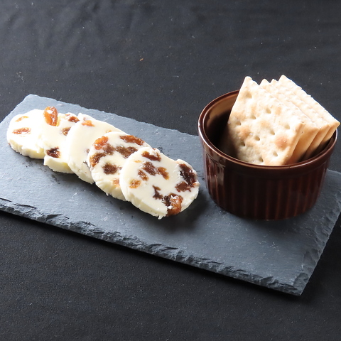 店主自慢の自家製レーズンバター。バターの適度な塩味と香り、ラム酒に漬けたレーズンの優しい甘みが相まって、口の中にふんわりと広がります。アルコールとの相性も抜群なおすすめの一品です!