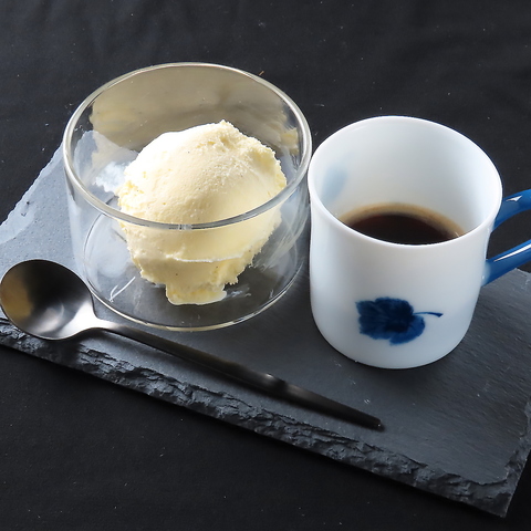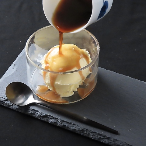 夜カフェ利用におすすめ!ひんやり冷たいアイスクリームに熱々のエスプレッソをお好みでかけてお召し上がりください。アイスクリームの甘さと、エスプレッソの苦みが絶妙にマッチした人気の一品です。