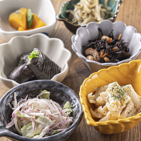 オーナーが厳選した旬の新鮮野菜をふんだんに使用!色とりどりの野菜たちは、その時季に一番おいしいものばかりを集めた自慢のラインナップです★ショーケースには、野菜本来の旨みがぎゅっと詰まった小鉢料理がずらり!一口食べれば、シャキシャキとした食感とみずみずしさが口いっぱいに広がり、心まで満たされます♪