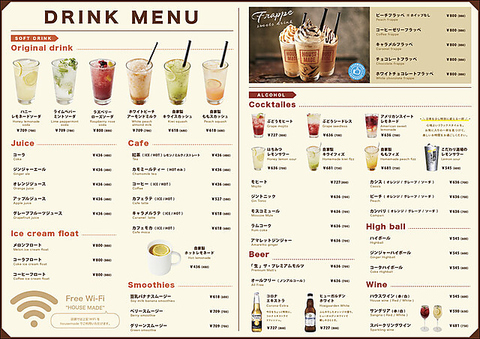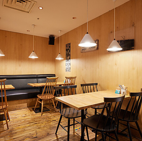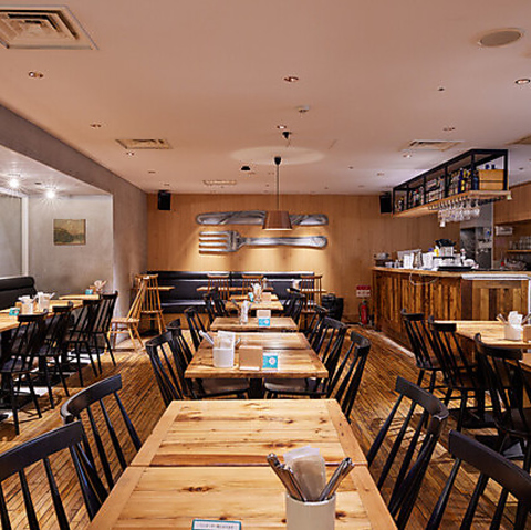 豊富なメニュー数をご用意しており、しっかりお食事をしたい方も、カフェ利用やショッピングの休憩で立ち寄りたい方も大歓迎です。カジュアルな木目調のインテリアとモダンな壁が調和した空間は、友人との楽しい時間や、デートでの語らいにもぴったり。どんなシチュエーションにも柔軟に対応します。