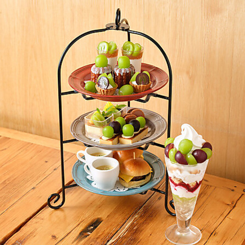 ボリューム満点の可憐な『アフタヌーンティー』で、心ときめくティータイムをお届けします。可愛いスイーツとセイボリーに加え、フレンチトーストやパフェ付きなど、バリエーション豊富なメニューをご用意。選べるカフェとセットで、自分へのご褒美はもちろん、女子会にも最適♪この優雅なティータイムで、日頃の疲れを吹き飛ばしてください!