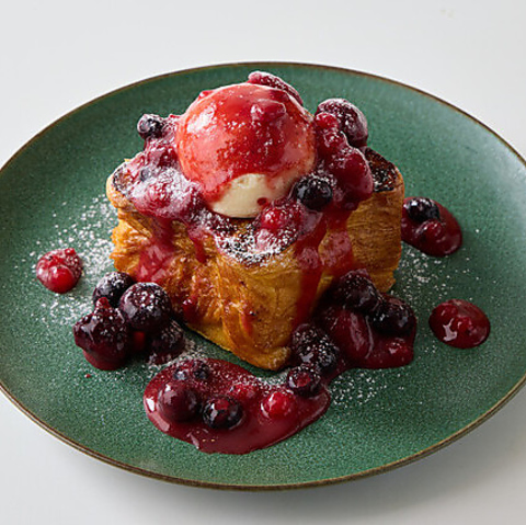 リピーターさんが多いフレンチトースト!スキレットで提供するフレンチトーストは、熱々で外はカリ、中はジュワと絶品。4種のベリーデニッシュフレンチトーストやチョコテイストなど、人気商品が多数。他にもパフェなど豊富なデザートをご用意しております♪