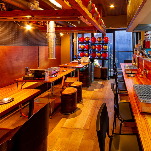 ≪職人の技を楽しめるカウンター席≫全6席ご用意したライブ感あふれるカウンター席からは、職人の繊細な手さばきをご覧いただけます。臨場感あふれる空間の中、当店がご用意した上質な極上焼肉を存分にお楽しみください。おひとり様でのご利用はもちろん、特別なデートやご友人同士でのご飲食にも最適なお席です。