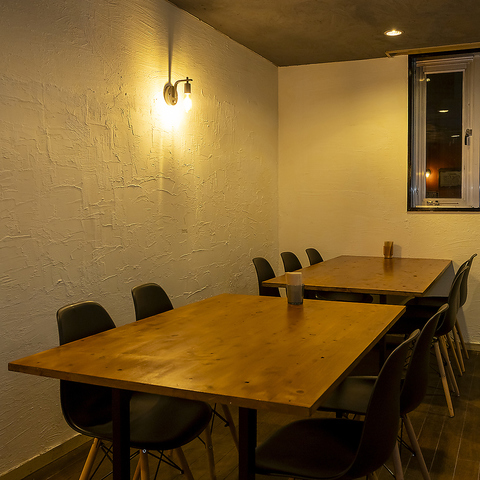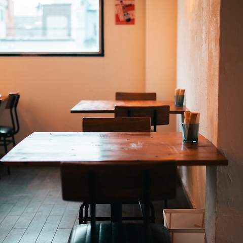 シンプルで無駄を削ぎ落した空間は居心地よく、隠れ家カフェにいるような心持ち。テーブルのサイズも様々なタイプをご用意しておりますので、お一人様の気軽なお食事に、パートナーとのデートに、賑やかな女子会に、幅広い用途でご利用いただけます。