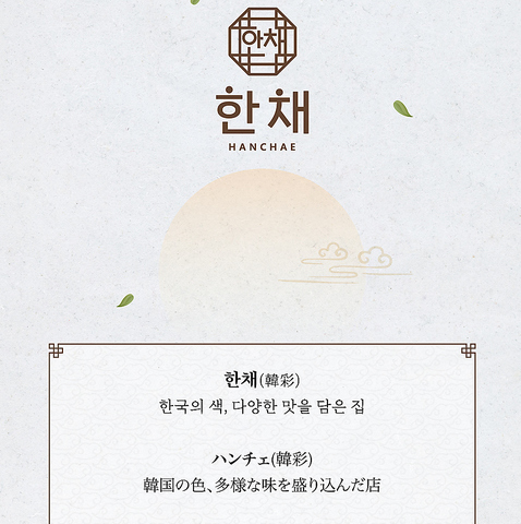 【ハンチェ(韓彩)…韓国の色、多様な味を盛り込んだ店。】鮮やかな食材と豊かな風味が調和した料理の数々は、食べる人々を魅了し、心を満たします。ぜひ韓国のエッセンスを感じながら、特別なひとときをお過ごしください。