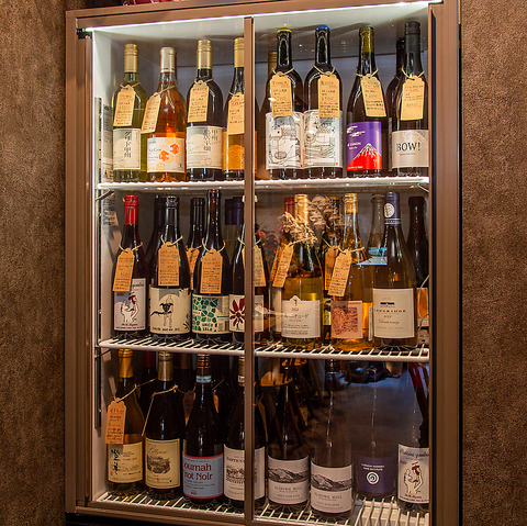 国産ナチュラルワインを中心に、鶏料理とのペアリングを楽しめるラインナップをご用意。ショーケースからお好きな一本を選ぶスタイルで、迷ったときはスタッフがご提案します。日本酒や焼酎も幅広く、よこやま・鍋島・田酒などの銘柄も人気。料理とお酒の相乗効果をぜひご体感ください。
