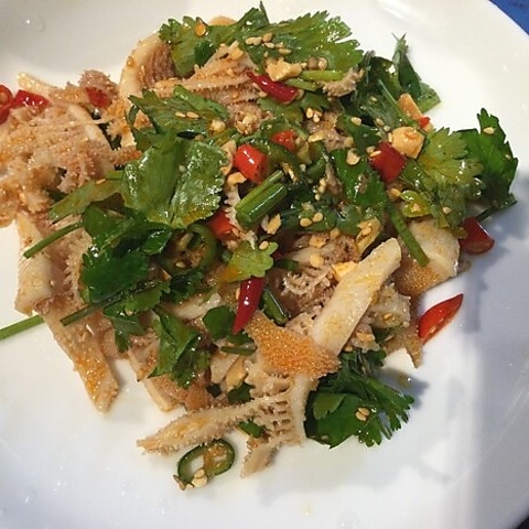 中国のスパイスを駆使した本格的な味わいで、一度食べたら忘れられない牛せんまい。2種類の唐辛子の豊かな香りと辛さが食欲を刺激します。シャキシャキとしたせんまいの食感と、後引く辛さがやみつき!この刺激が、お酒との相性を格段に高めます。本格的な四川料理をリーズナブルな価格でお楽しみください!