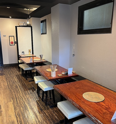 テーブル席は14席をご用意してます。ご家族、ご友人、など少人数でも、各種宴会等団体様でもご利用いただけるコースなど、様々なシーンでご利用いただけます。ラムチャックによく合う焼酎やワインも取り揃えております♪
