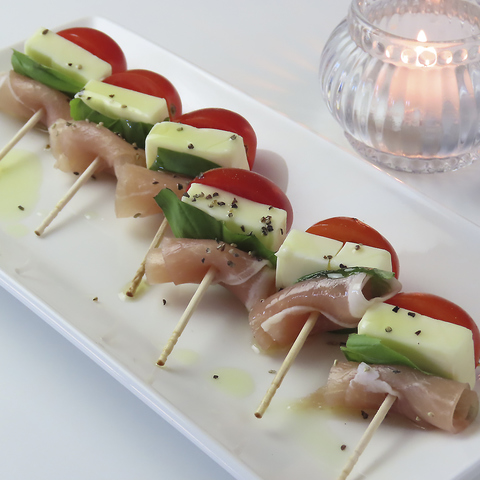 当店のカプレーゼは、赤と白と緑の美しい彩りが目を引く一品です。新鮮なトマトとモッツァレラチーズ、バジルが織りなすハーモニーは、ワインとの相性抜群!前菜としても最適で、食欲をそそる爽やかな味わいが特長です。大切な人との食事や、友人との楽しいひとときにぴったりな一皿をぜひお楽しみください。