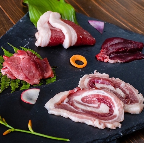 それぞれの部位を少しずつ楽しめる、贅沢な盛り合わせ♪山の恵みを存分に味わえる一皿です◎猪は旨味がぎゅっと詰まり、脂身は驚くほど甘く、炭火で焼くと香ばしさも倍増。鹿はクセが少なく赤身の旨味がしっかり。ヘルシーでジューシー、噛むほどに自然の風味が広がります。初心者の方でも、楽しんでいただける一皿です。