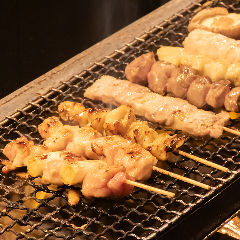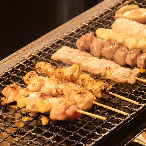 当店の焼き鳥は、炭火でじっくり焼き上げているので、外はカリッとしているのに中は柔らかくジューシーです!定番のももやねぎまから、ぼんじりやささみ、つくねや野菜など種類豊富にご用意しております!