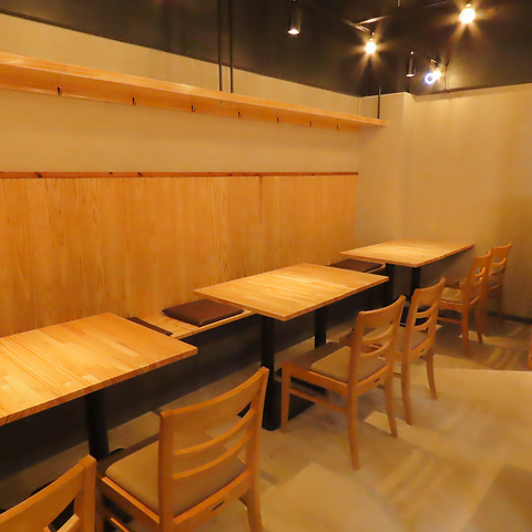≪温かみのある木目調が自慢≫自然素材を活かした落ち着いた雰囲気の中で、ゆったりとした時間をお過ごしいただけます。木のぬくもりが感じられ、心地よい空間は、友人との会話や大切な人との食事に最適です◎照明も柔らかく、リラックスした雰囲気の中、お食事をご堪能ください。