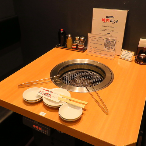 広々としたテーブル席は、大小合わせて18卓74席ございます。ご家族やご友人との食事、会社の宴会など、様々なシーンでご利用いただけます。ゆったりとくつろぎながら、美味しい焼肉をお楽しみください。