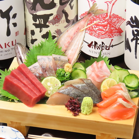 老舗鮪問屋から直送の本マグロをはじめ、料理人が築地時代の目利きを活かした新鮮な海の幸が楽しめる”肴と酒晴々”。日本酒と併せて楽しみたいお刺身には、『三種盛り』『五種盛り』をそれぞれご用意しております。通常メニューの他、その日によって内容が変わる本日のおすすめもございます◎