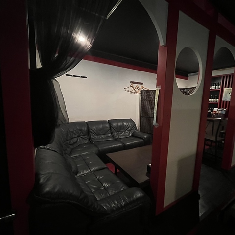 当店では、団体様でもゆったりと座れるL字型の大きなソファー席を完備しております。黒のレザーソファーと赤と白を基調とした内装は、落ち着きがありながらもモダンで、大人の隠れ家のような雰囲気を演出◎周りを気にせず、親しい方たちとのおしゃべりやゲームを心ゆくまで満喫していただけます。