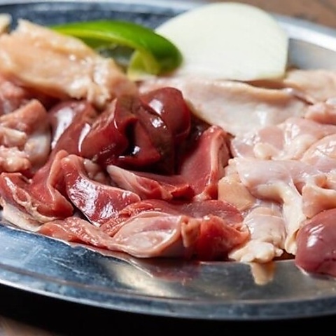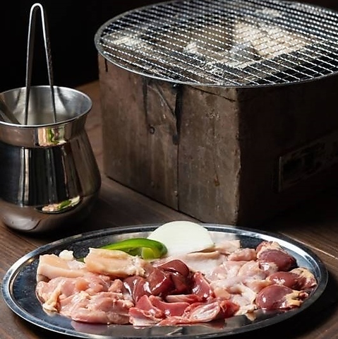 七輪を使って自分で焼く鶏焼き肉は、もも肉やきも(肝臓)といった定番部位はもちろん、ハラミ、せせり、ヤゲン軟骨などの様々な部位をお好みに合わせて単品で注文いただけます。ジュージューと焼ける音と香ばしい香りが食欲をそそり、特性タレや秘伝の塩でいただく鶏肉の旨みは格別です!