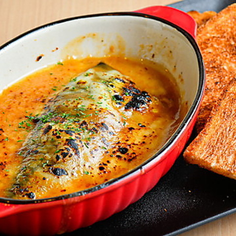 サバのアヒージョ、サバのポテトサラダなど、ここでしか食べられない一品も多数。写真はサバ味噌グラタン♪