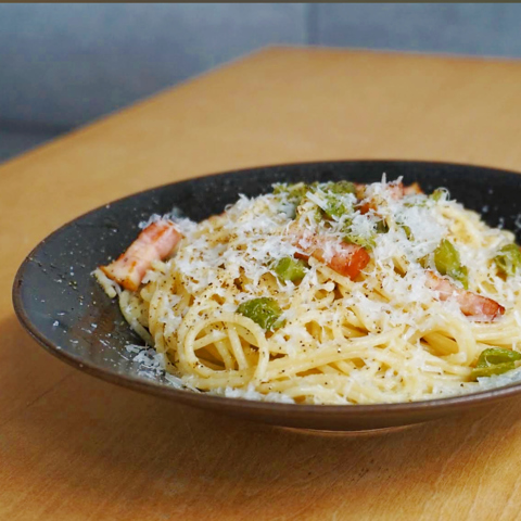 山形県河北町の季節野菜を使用したペペロンチーノ※具材は日替わりになります。