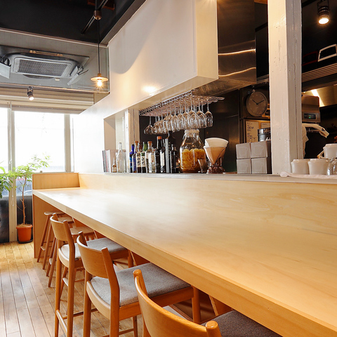 店内は木の素材感と白を基調とした、シンプルで落ち着いたデザイン。過度な装飾を控え、食事と会話が自然に楽しめる“余白のある空間”づくりを大切にしています。陽の入り方や家具の質感にもこだわり、昼は明るく爽やかに、夜は温かみのある雰囲気に変わるのも魅力。どんなシーンにも寄り添う心地よい空間です。