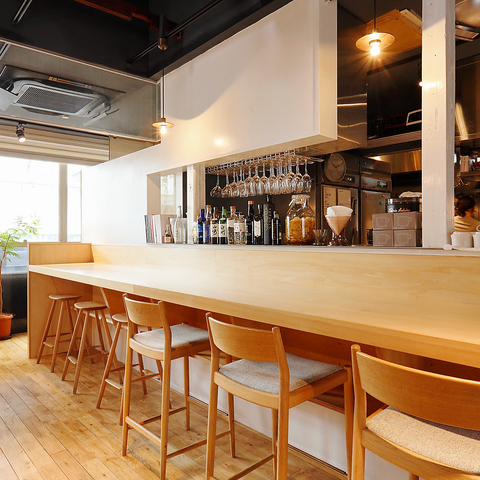 店内は木の素材感と白を基調とした、シンプルで落ち着いたデザイン。過度な装飾を控え、食事と会話が自然に楽しめる“余白のある空間”づくりを大切にしています。陽の入り方や家具の質感にもこだわり、昼は明るく爽やかに、夜は温かみのある雰囲気に変わるのも魅力。どんなシーンにも寄り添う心地よい空間です。