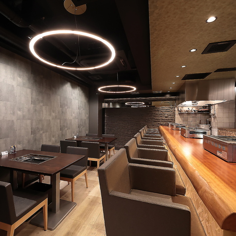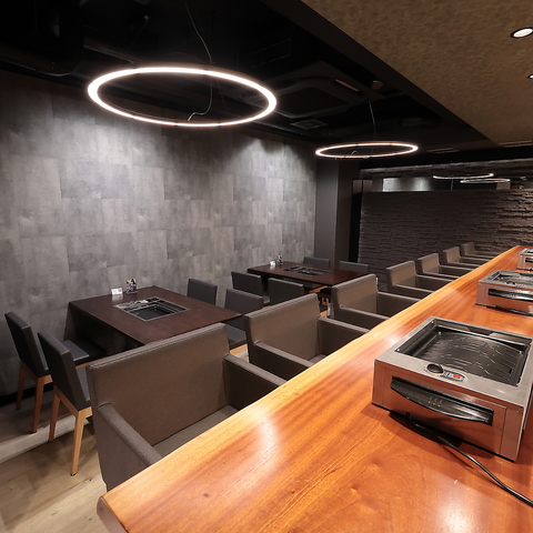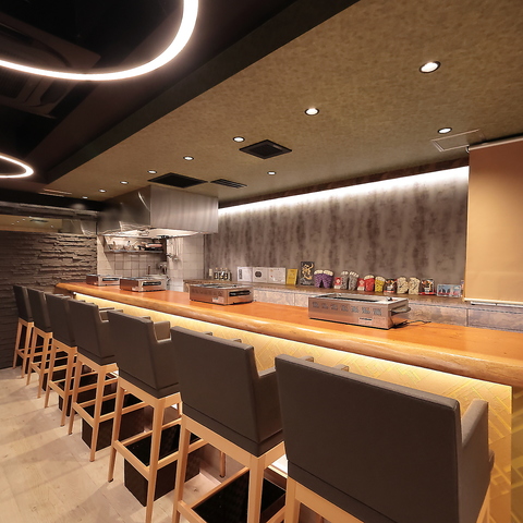 【特別な時間を過ごせるカウンター席】1名~最大8名までご予約可能なカウンター席をご用意。一人で気軽に贅沢したい時や、大切な方と横並びで親密な時間を過ごしたい時にぴったり。周りを気にせず、ゆったりと自分だけのペースで最高のお肉をお楽しみいただけます。落ち着いた雰囲気で、記憶に残るひとときをどうぞ。