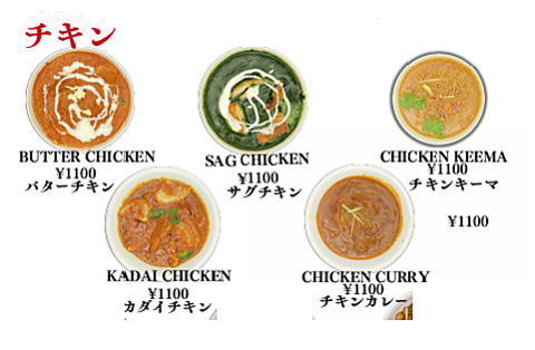 バターチキン/サグチキンチキンキーマ/カダイチキン/チキンカレー