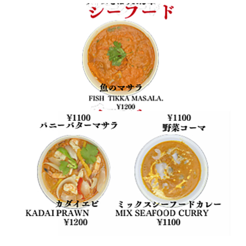 魚のマサラ1200円/カダイエビ1200円/ミックスシーフードカレー1100円