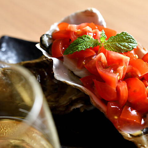大ぶりの生牡蠣にこだわり、食べ方にも試行錯誤を重ね、より美味しく召し上がっていただくための工夫を施しました。『牡蠣トマト』や『牡蠣シャーベット』では、フレッシュなトマトや柑橘シャーベットと合わせることで、新しい牡蠣の魅力を発見できます。牡蠣そのものの美味しさだけではなく、新しい牡蠣の味わいをぜひご賞味ください。