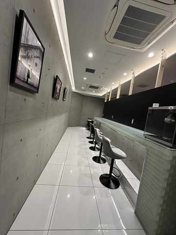 コンクリートの壁やスタイリッシュなカウンターが、落ち着いた雰囲気を醸し出しています。明るい照明が心地よさを加え、リラックスしたひとときを提供いたします。