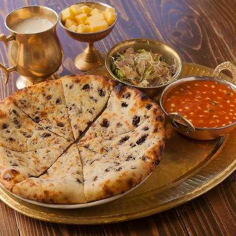 当店のオーナーが考案した最高傑作、「ハニーチーズナン」。とろ~りとろけるチーズと、たっぷりハチミツの絶妙な組み合わせが、一度食べたらクセになる絶品の美味しさです。ぜひお好みのカレーに合わせてお楽しみください♪