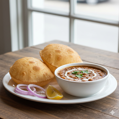 北インドで絶大な人気を誇る定番の朝食&ストリートフード!スパイスたっぷりの濃厚ひよこ豆カレー「チョレ」と、揚げたて巨大なフワフワ揚げパン「バトゥーレ」の最強コンビです。サクッもち食感のパンにスパイシーなカレーをたっぷり絡めて頬張れば、本場の熱気と美味しさが口いっぱいに広がります♪ぜひ、お試しください