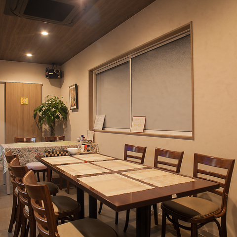 4名掛けテーブルを2卓、2名掛けテーブルを1卓ご用意しており、少人数での集まりに最適な空間です。カラオケも完備しているため、会社仲間との飲み会や、ご友人との宴会・二次会にも使いやすい空間です。和気あいあいと楽しめる雰囲気で、食事と一緒に会話も盛り上がること間違いなし。