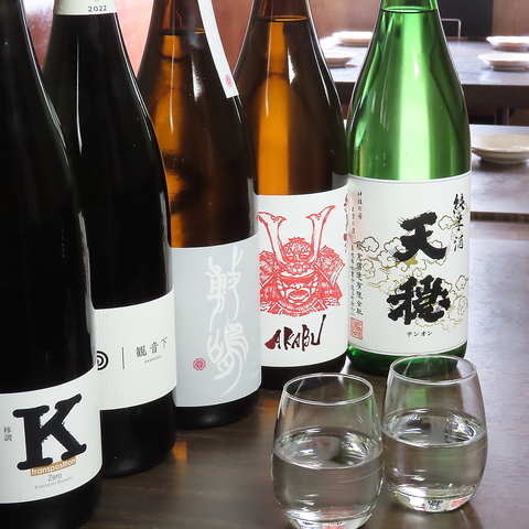 お料理と相性抜群な日本酒の数々。料理長が厳選した日本酒を季節に応じたラインナップでお楽しみいただけます。王道なものから珍しいものまで月一で変わるので毎月違った味を堪能。料理によってのおすすめなどお気軽にご相談ください♪