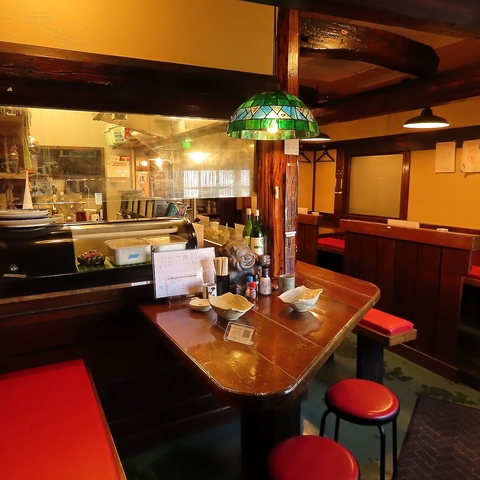 「昔ながらの居心地いい空間」をコンセプトとしており、店内は木のぬくもりを感じさせる落ち着いた照明と、特徴的な赤いベンチが、訪れるお客様に安らぎを与える空間を作り出しています。ゆったりと座れるベンチ席を中心にご用意しております。どこか懐かしくホッとできる温かい雰囲気が自慢です★