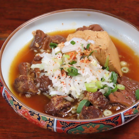 じっくりとろとろに煮込んだ"名物もつ煮"とろっとろにやわらかいもつに、コクと旨みがぎゅっと。しみっしみの名物もつ煮、毎日仕上がってます!ネギ&七味で仕上げて、お酒がすすむやつです♪